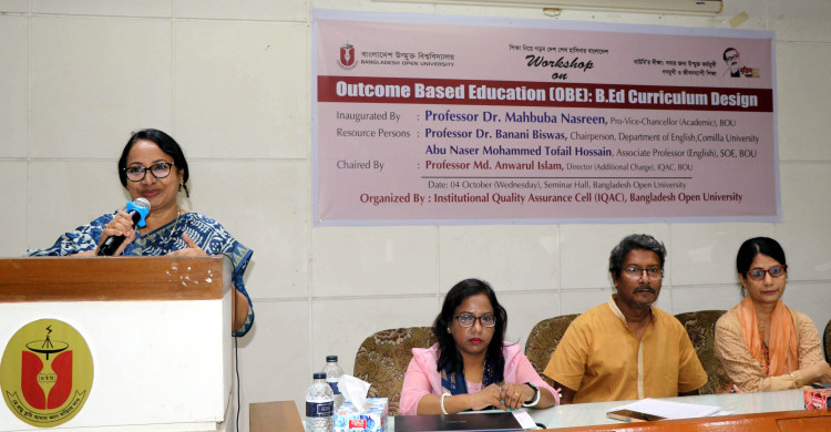বাংলাদেশ উন্মুক্ত বিশ্ববিদ্যালয়ের ইনস্টিটিউশনাল কোয়ালিটি অ্যাসুরেন্স সেল (আইকিউএসি) আয়োজিত “Outcome Based Education (OBE): B.Ed Curriculam Design” শীর্ষক এক কর্মশালা বুধবার গাজীপুরস্থ ক্যাম্পাসের সেমিনার হলে অনুষ্ঠিত হয়েছে। কর্মশালা উদ্বোধন করেন বাউবির উপ-উপাচার্য (শিক্ষা) অধ্যাপক ড. মাহবুবা নাসরীন।
