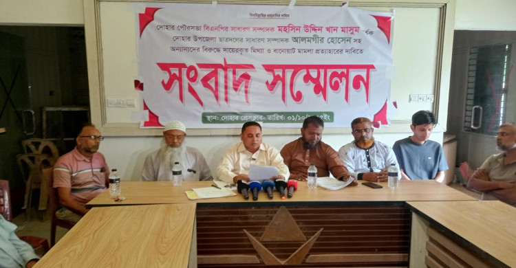 দোহারে মিথ্যা মামলা প্রত্যাহারের দাবিতে সংবাদ সম্মেলন