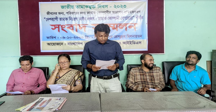 নেত্রকোনার দুর্গাপুরে জাতীয় তামাক মুক্ত দিবস উপলক্ষে দেশব্যাপী তামাক নিয়ন্ত্রণ আইন লঙ্ঘন, তামাক কোম্পানির বেপরোয়া উৎপাদন প্রতিহতকরন বিষয়ক এক সংবাদ সম্মেলন অনুষ্ঠিত হয়েছে। সোমবার দুপুরে দুর্গাপুর প্রেসক্লাব মিলনায়তনে বাংলাদেশ তামাক বিরোধী জোট ও আইইডিএস এর আয়োজনে সংবাদ সম্মেলনের মাধ্যমে সুপারিশ তুলে ধরেন আইইডিএসের নির্বাহী পরিচালক শামীম কবীর।