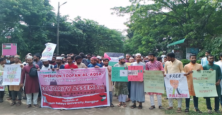 রংপুরের বেগম রোকেয়া বিশ্ববিদ্যালয়ে (বেরোবি)ইসরায়েলী অবৈধ দখলদারদের বিরুদ্ধে মুক্তিকামী ফিলিস্তিনিদের প্রতিবাদী সংগ্রাম 'তুফান আল আকসা' এর সংহতি জানিয়ে এক বিরাট সংহতি সমাবেশের আয়োজন সংগঠিত হয়েছে।