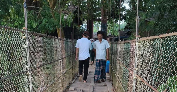রাজস্থলীতে একমাত্র ঝুলন্ত ব্রিজ স্থানীয় জনগণ প্রতিদিন ঝুঁকি তে চলাচল