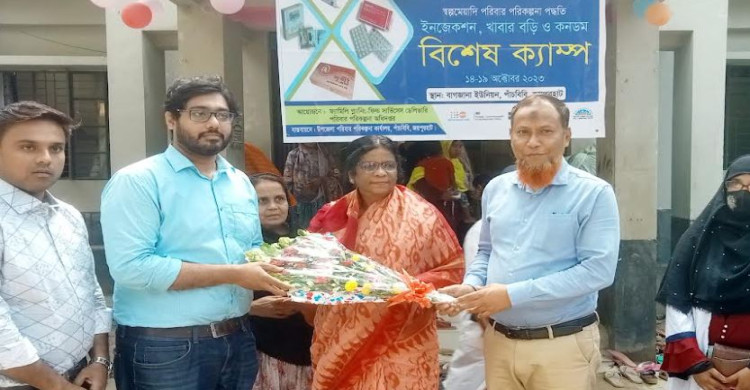 জয়পুরহাটে পাঁচবিবি উপজেলার বাগজানা ইউনিয়ন স্বাস্থ্য ও পরিবার কল্যাণ কেন্দে স্বল্পমেয়াদী পরিবার পরিকল্পনা পদ্ধতি গ্রাম পর্যায়ে কার্যকর করতে বিশেষ সেবা ক্যাম্প অনুষ্ঠিত হয়েছে। বৃহস্পতিবার দুপুরে বাগজানা ইউনিয়ন স্বাস্থ্য ও পরিবার কল্যাণ কেন্দ্রে অনুষ্ঠিত সেবা ক্যাম্পে এলাকার শত শত গর্ভবতী মায়ের সেবা, প্রতিনিয়ত শিশু ও সাধারন রোগীর চিকিৎসা এবং ঔষধ প্রদান, কিশোরীদের বয়ঃসন্ধিকাল, খাবার বড়ি, কনডম ও ইনজেকশন বিষয়ক মাঠ পর্যায়ে প্রচারণার লক্ষে বিশেষ সেবা ক্যাম্পের উদ্বোধন করেন বাংলাদেশ আ,লীগের কেন্দ্রীয় কমিটির স্বাস্থ্য ও জনসংখ্যা সম্পাদক ডাঃ রোকেয়া সুলতানা। জেলা পরিবার পরিকল্পনা কার্যালয়ের বাস্তবায়নে ইউএনএফপিএর সহযোগিতায় ফ্যামিলি প্লানিং ফিল্ড সার্ভিসেস ডেলিভারি এ সেবা ক্যাম্পের আয়োজন করেন। এসময় জেলা পরিবার পরিকল্পনা বিভাগের উপ-পরিচালক ডাঃ কাজী মোহাম্মদ জোবায়ের গালীব, উপজেলা পরিবার পরিকল্পনা বিভাগের মেডিকেল অফিসার ডাঃ সৈয়দ মোঃ নাঈম, পরিবার পরিকল্পনা পরিদর্শীকা মোছাঃ পরিবানু বিবি, পরিদর্শক মোঃ শাহী, ফার্মাসিস্ট আব্দুল কাদির সহ সকল ইউনিটের পরিবার কল্যাণ সহকারিগন উপস্থিত ছিলেন।