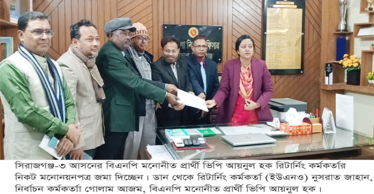 সিরাজগঞ্জ-৩ আসনে মনোনয়ন পত্র জমা দিলেন ভিপি আয়নুল