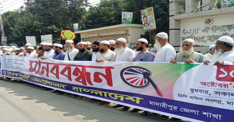 মাদারীপুরে পিআরসহ পাঁচ দফা দাবিতে ইসলামী আন্দোলনের মানববন্ধন