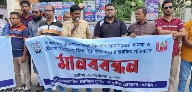 সাংবাদিকদের ওপর হামলার প্রতিবাদে কুষ্টিয়ায় মানববন্ধন