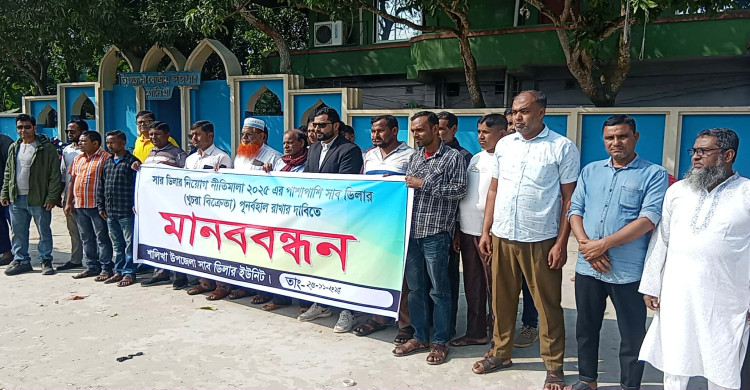 শালিখায় খুচরা সার বিক্রিতাদের লাইসেন্স বাতিলের প্রতিবাদে মানববন্ধন ও স্মারক লিপি প্রদান