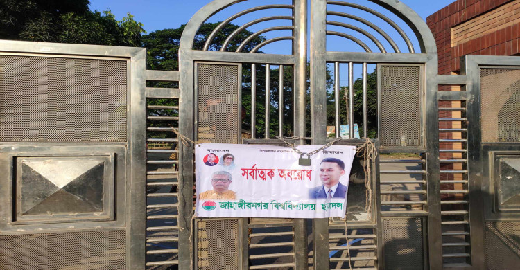 বিএনপির ডাকা তিন দিনের অবরোধ কর্মসূচির অংশ হিসেবে জাহাঙ্গীরনগর বিশ্ববিদ্যালয়ের (জাবি) প্রধান ফটকসহ ছয়টি ফটকে তালা ঝুলিয়ে দিয়েছেন ছাত্রদলের নেতাকর্মীরা। বুধবার (০১ নভেম্বর) সকাল সাড়ে সাতটায় ওই প্রবেশ পথগুলোতে তালা ঝুলিয়ে দেওয়া হয়।
