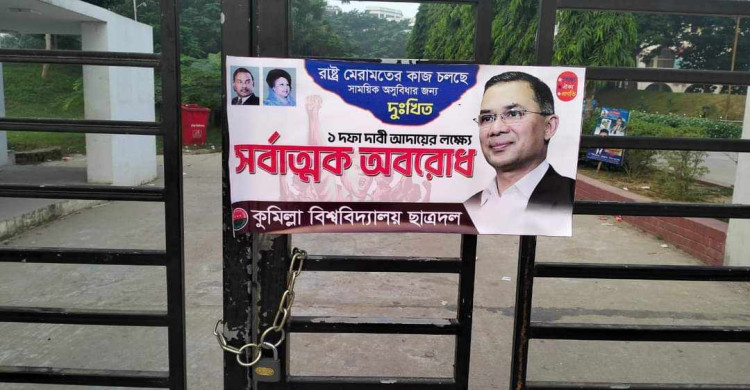 'বিএনপির ডাকা দুইদিনের সর্বাত্মক অবরোধ কর্মসূচির সমর্থন জানিয়ে আমরা কুমিল্লা বিশ্ববিদ্যালয়ের প্রধান ফটকে তালা ঝুলিয়েছি। দেশনেত্রী বেগম খালেদা জিয়ার মুক্তি দিয়ে অতি দ্রুত একটি নিরপেক্ষ সরকারের অধীনে আগামী সংসদ নির্বাচন করতে হবে। অন্যথায় সাধারণ শিক্ষার্থীদের নিয়ে আমরা প্রতিটি ক্যাম্পাসে আন্দোলন চালিয়ে যাব।'