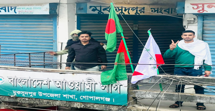 দীর্ঘ ১৯ মাস পর মুকসুদপুর উপজেলা আওয়ামী লীগ কার্যালয় পতাকা উত্তোলন
