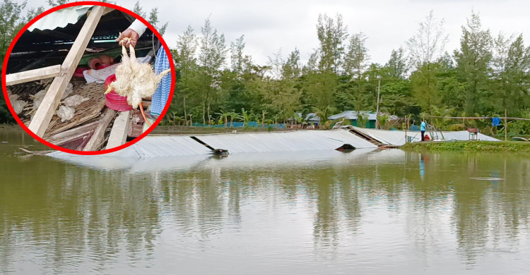 সরজমিনে গিয়ে দেখা যায়, শুক্রবার বিকালে ঘূর্ণিঝড় মিধিলি'র আঘাতে জেলার কবিরহাট উপজেলার ৩নং ধানসিঁড়ি ইউনিয়নের ৮নং ওয়ার্ড পূর্ব নবগ্রামের আজাদ সর্দারের দোকান সংলগ্ন হাজী নুর নবী সর্দারের খামারে ৩হাজার পোল্ট্রি মুরগী সহ বিশাল একটি ঘর পানিতে পড়ে গিয়ে মুহুর্তেই ডুবে যায় তার স্বপ্ন।