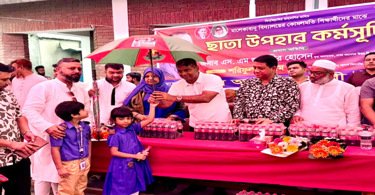 উত্তরার মালেকাবানু বিদ্যালয়ের শিক্ষার্থীদের এস এম জাহাঙ্গীরের ছাতা উপহার