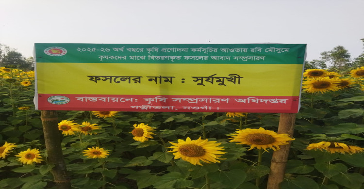 পত্নীতলায় সূর্যমুখী চাষ করে আলোড়ন তুলছেন মাসুদুল হক।