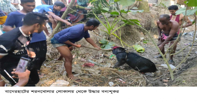 শরণখোলা বন্যপ্রাণি সেচ্ছাসেবী সংগঠনের সভাপতি নাজমুল ইসলাম জানান, সুন্দরবন থেকে শূকর আসার খবর পেয়ে সংগঠনের সদস্য রাকিব, আলামীন ও রুবেলসহ তারা ঘটনাস্থলে যান। পরে গ্রামবাসীর সহায়তায় কৌশলে শূকরটি ধরে বনবিভাগের কাছে হস্তান্তর করেন। শূকরটি মাঠের আমন ধান তছনছ করে রুবেল শাহ’র বাড়িতে ঢুকে ক্ষেতখামারও নষ্ট করে।