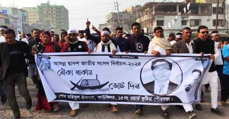 কুষ্টিয়ায় নৌকার পক্ষে কাউন্সিলর মহিদুল ইসলামের মিছিল