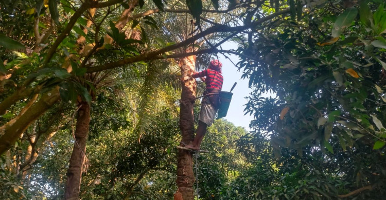 শীতের আগমনে বাঘায় খেজুর গাছ প্রস্তুতে ব্যস্ত গাছিরা