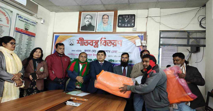 কুষ্টিয়া প্রেস ক্লাব ( কেপিসি)তে শতাধিক শীতার্ত মানুষের মধ্যে কম্বল বিতরণ করেছেন জেলা প্রশাসক মোঃ এহেতেশাম রেজা। সকালে ডিসিকোর্ট চত্ত্বরে কুষ্টিয়া প্রেস ক্লাবের সাংবাদিক পিনু-খোকন কনফারেন্স রুমে বিভিন্ন সংবাদপত্রের হকার, গণমাধ্যমের অফিস স্টাফ, কম্পিউটার অপারেটর, অস্বচ্ছল সংবাদকর্মীসহ ১৫০ জন শীতার্ত মানুষের হাতে কম্বল তুলে দেন প্রেসক্লাবের পৃষ্ঠপোষক, জেলা প্রশাসক মোঃ এহেতাশাম রেজা। এসময় বিএফইউজে-বাংলাদেশ ফেডারেল সাংবাদিক ইউনিয়নের সহ সভাপতি আফরোজা আক্তার ডিউ, কুষ্টিয়া প্রেসক্লাবের সভাপতি রাশেদুল ইসলাম বিপ্লব, সিনিয়র সহ সভাপতি মিলন উল্লাহ, শেখ হাসান বেলাল, প্রেসক্লাবের সাধারণ সম্পাদক সোহেল রানা, যুগ্ম সাধারণ সম্পাদক ও সাংবাদিক ইউনিয়ন কুষ্টিয়ার সাধারণ সম্পাদক মাহমুদ হাসান, সাংগঠনিক সম্পাদক ফিরোজ কায়সার, দপ্তর সম্পাদক এস এম ওয়ালিদুজ্জামান শুভ, প্রচার ও প্রকাশনা সম্পাদক এইচ এম বেলাল, ক্রীড়া ও সাংস্কৃতিক সম্পাদক জাহিদুল হক ডন, তথ্য ও গবেষণা সম্পাদক হাফিজুর রহমান জীবন, ত্রাণ ও সমাজকল্যাণ সম্পাদক আকতার উন নবী মনা, ধর্মীয় সম্পাদক সাইফ উদ্দিন আল আজাদ, নির্বাহী সদস্য সাবিনা ইয়াসমিন শ্যামলী, জাহিদুজ্জামান, মিলন খন্দকার, এফসি রিপন, সাংবাদিক ইউনিয়ন কুষ্টিয়ার কোষাধ্যক্ষ ইমরান হাসান পাপ্পু, প্রচার সম্পাদক চাঁদ আলী, দৈনিক লালনভূমি সম্পাদক রফিকুল ইসলাম, দৈনিক বাংলাদেশের আলোর জেলা প্রতিনিধি সুমন মাহমুদ, সিনিয়র ফটো সাংবাদিক মাহমুদুল হক বাদল, জালাল উদ্দীন খোন, টিভি ক্যামেরাপার্সন এসোসিয়েশনের সভাপতি আশিকুজ্জামান শারফু, সাংগঠনিক সম্পাদক আরিফুজ্জামান সহ প্রিন্ট ও ইলেক্ট্রনিক মিডিয়ায় কর্মরত সাংবাদিকরা উপস্থিত ছিলেন।