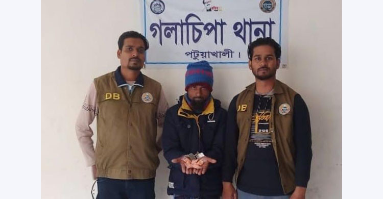 পটুয়াখালীর গলাচিপার গোলখালী ইউনিয়নের ২নং ওয়ার্ডস্থ হরিদেবপুর বাসষ্ট্যান্ড এর মিজান স্টোর এর বন্ধ দোকানের সামনে পাকা রাস্তার উপর থেকে ৫০০(পাঁচশত) পিচ ইয়াবা সহ এক মাদক ব্যবসায়ী মোঃ মিলন হাওলাদার (৩৭) কে আটক করে পটুয়াখালী ডিবিপুলিশ । পুলিশ সূত্রে জানা যায়, পটুয়াখালীর পুলিশ সুপার মোঃ সাইদুল ইসলাম, বিপিএম, পিপিএম, এর দিক নির্দেশনায় জেলা ডিবিপুলিশ এর অফিসার ইনচার্জ একে এম আজমল হুদা এর নেতৃত্বে গোপন সংবাদের ভিত্তিতে ২২ জানুয়ারী সোমবার সকালে মাদক উদ্ধার অভিযানে এই মাদক ব্যাবসায়ীকে আটক করা হয়। আটক কৃত মাদক ব্যাবসায়ী গলাচিপা সদর ইউনিয়নের ২নং ওয়ার্ডের ইটবাড়িয়া গ্রামের মৃত লাল মিয়া হাওলাদারের ছেলে। তবে, ঘটনার সাথে জরিত কাউকে আটক করতে পারেনি পুলিশ।