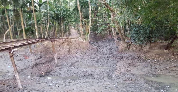 এমন অভিযোগ উপজেলার রায়েন্দা ইউনিয়নের কদমতলা গ্রামের মোঃ আব্দুল মজিদ খানের। মজিদ খান জানান,একই ইউনিয়নের রাজেস্বর গ্রামে তার মালিকানা সাড়ে চার একর জমিতে সুপারি গাছসহ বিভিন্ন প্রজাতির গাছ লাগিয়ে তিনি তৈরি করেছেন বাগানবাড়ি। যে বাড়িটি অনেক পুরনো। সেই বাড়িতে নিজেদের সীমিত চলাচলের জন্য পার্শ্ববর্তী খালে দেয়া হয় সাঁকো। পরবর্তীতে সেই সাঁকো ভেঙ্গে কাঠ দিয়ে অস্থায়ী পুল তৈরি করেন তারা। কিন্তু বর্তমানে তাকে না জানিয়ে এবং তার সাথে কোনো প্রকার কথা না বলে পুরনো পুল ভেঙ্গে বাড়ির উপর থেকেই সরকারিভাবে স্থায়ী কালভার্ট নির্মাণ করছেন উপজেলা প্রকল্প বাস্তবায়ন কর্মকর্তা। যার কারনে ওই বাড়ির গাছপালা ও জমির ব্যাপক ক্ষতি হবে বলে জানান বাড়ির মালিক আব্দুল মজিদ খান। তার দাবি দ্রুত কালভার্টের কাজ বন্ধ না করলে তার বাড়িটি মারাত্মক ক্ষতির মুখে পড়বে।