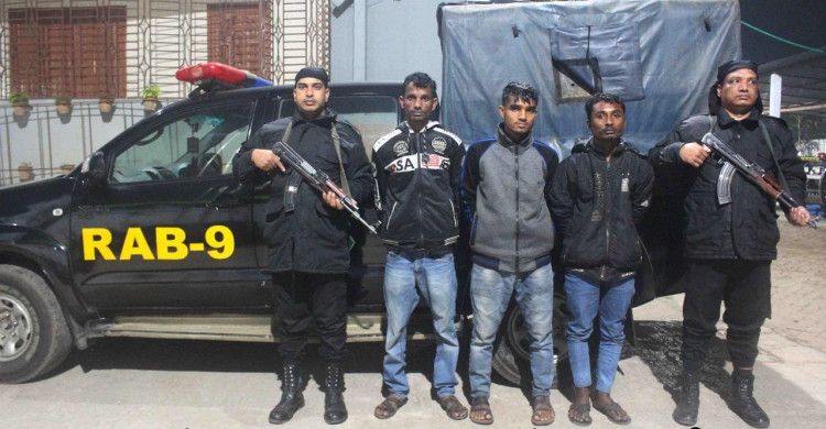 গ্রেপ্তারকৃতরা হলেন, সিলেটের বালাগঞ্জ থানার হামছাপুর গ্রামের মৃত মজমিল আলীর ছেলে মিজানুর রহমান (৩১) ও সিলেটের সিরাজ উদ্দিনের ছেলে আবু তাহের (২৬) এবং সুনামগঞ্জের জসিম উদ্দিনের ছেলে তারেক আহমদ (১৮)।