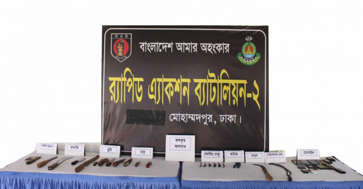 রাতভর র্যাবের অভিযানে দেশীয় অস্ত্র সহ ৩৬ কিশোর গ্যাং আটক