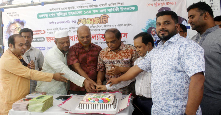 বঙ্গবন্ধু শেখ মুজিবুর ১০৪ তম জন্মদিন কেক কেটে উদযাপিত