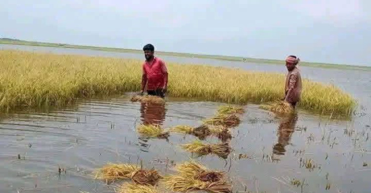 শান্তিগঞ্জে জলাবদ্ধতায় বোরো ধান কাটায় সংকট, স্বেচ্ছাসেবী সহায়তার আহ্বান