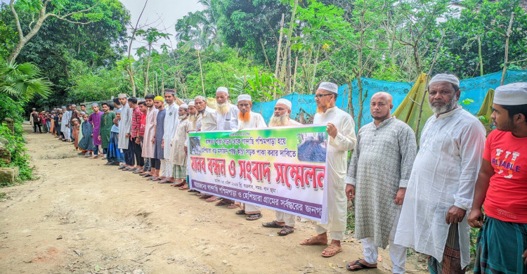 কুমিল্লায় সড়ক পাকা করণের দাবীতে মানববন্ধন