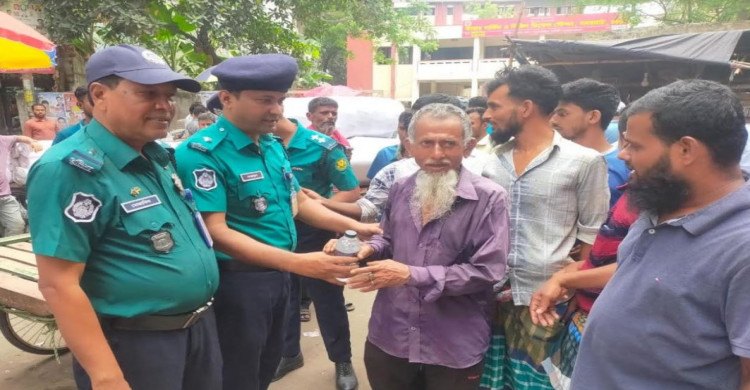 ডিএমপি কোতয়ালী থানার উদ্যোগে পথচারী’দের মাঝে সুপেয় পানি ও স্যালাইন বিতরন