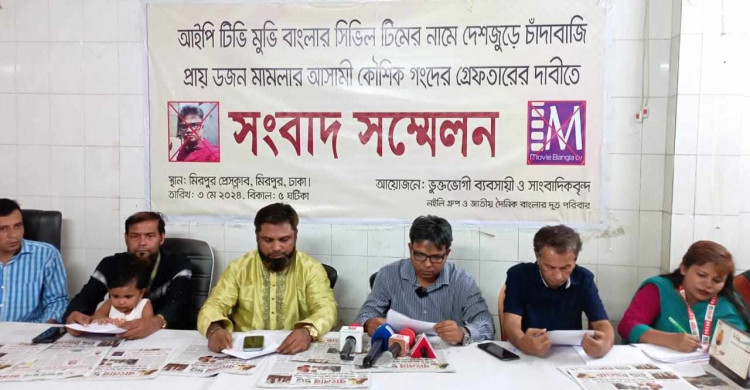 আইপি টিভি মুভি বাংলার সিভিল টিমের নামে দেশজুড়ে চাঁদাবাজি ও প্রায় ডজন খানেক মামলার আসামী কৌশিক গংদের গ্রেফতারের দাবীতে মিরপুর প্রেসক্লাবে ৩ মে সংবাদ সম্মেলন করেছে বেশ কয়েকজন ভূক্তভোগী। তাদের বিরুদ্ধে গত ২ মে আদালতে চাঁদাবাজী মামলা দায়ের হয়েছে, যার তদন্তের জন্য দায়িত্ব দেওয়া হয়েছে পুলিশের চৌকশ বাহীনি পিবিআই-কে। এছাড়াও কৌশিকের বিরুদ্ধে পুর্বে রয়েছে মাদক ব্যবসা, দস্যুতা-ডাকাতি, নাশকতা, চাঁদাবাজি, নারী নির্যাতনসহ প্রায় ডজন খানেক মামলা। মামলাগুলোর নম্বর ও বিবরণসহ বিভিন্ন গণমাধ্যমে সংবাদ প্রকাশ হয়েছে। মুভি বাংলার ফেসবুক লাইভে ও সিভিল টিমের মিথ্যা সংবাদ প্রচার করায় মিরপুরের নারী উদ্যোক্তা ও একাধীক সাংবাদিক শাহ আলী ও দারুস সালাম থানায় জিডি এবং অভিযোগ দায়ের করেছে। সংবাদ সম্মেলনে উল্লেখ করা হয়, মুভি বাংলার ইউটিউবে সংবাদ প্রচারের ভয় দেখিয়ে চাঁদাবাজ কৌশিক আহমেদ, জাহিদ হাসান মিশু, ক্যামেরা পার্সন আলতাফ হোসেন অমি গংদের বিরুদ্ধে ফুসে উঠেছে মিরপুরবাসী।