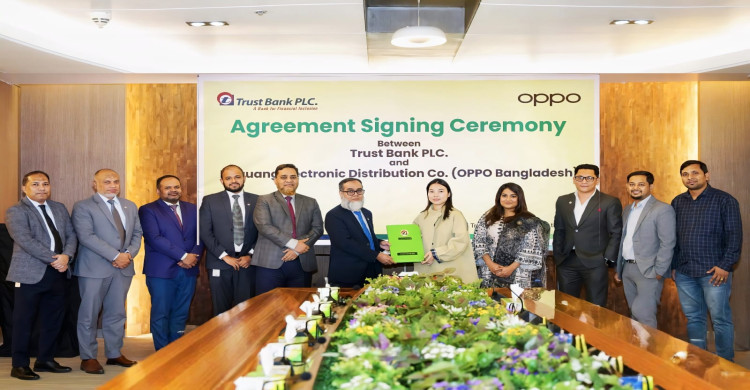 ট্রাস্ট ব্যাংক পিএলসি এবং হেগুয়াং ইলেকট্রনিক ডিস্ট্রিবিউশন কো. লিমিটেড (OPPO বাংলাদেশ) এর মধ্যে সমঝোতা চুক্তি স্বাক্ষর