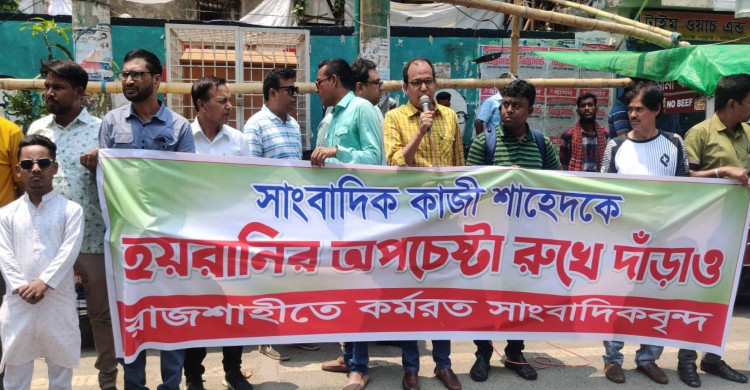 সাংবাদিকের বিরুদ্ধে সাইবার আদালতে মামলা, প্রতিবাদে রাজশাহীতে মানববন্ধন