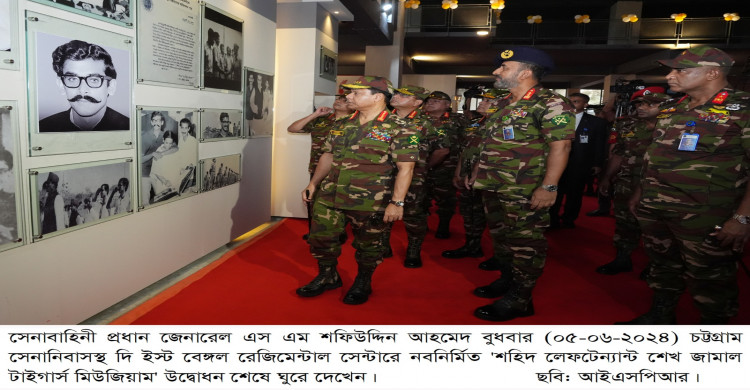 চট্টগ্রাম সেনানিবাসস্থ দি ইস্ট বেঙ্গল রেজিমেন্টাল সেন্টারে নবনির্মিত 'শেখ জামাল টাইগার্স মিউজিয়াম' আজ (০৫ জুন ২০২৪) উদ্বোধন করেন সেনাবাহিনী প্রধান জেনারেল এস এম শফিউদ্দিন আহমেদ, এসবিপি (বার), ওএসপি, এনডিইউ, পিএসসি, পিএইচডি। সর্বকালের সর্বশ্রেষ্ঠ বাঙালি জাতির পিতা বঙ্গবন্ধু শেখ মুজিবুর রহমানের দ্বিতীয় পুত্র শহিদ লেফটেন্যান্ট শেখ জামাল ১৯৭৫ সালে 'রয়েল মিলিটারি একাডেমি স্যান্ডহার্স্ট' হতে কমিশন লাভের পর ২ ইস্ট বেঙ্গল রেজিমেন্ট (জুনিয়র টাইগার্স) এ যোগদান করেন। গত ১৯৭৫ সালের ১৫ আগস্ট জাতির পিতা ও তাঁর পরিবারের অন্যান্য সদস্যদের সাথে তিনিও শহিদ হন। ইস্ট বেঙ্গল রেজিমেন্টের এ সূর্যসন্তানের স্মৃতিকে অম্লান করে রাখার প্রয়াসে টাইগার্স ডেন খ্যাত দি ইস্ট বেঙ্গল রেজিমেন্টাল সেন্টারে নির্মিত হয়েছে 'শেখ জামাল টাইগার্স মিউজিয়াম'।