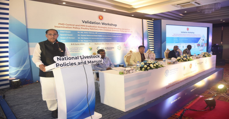 ০৮ জুন শনিবার ঢাকার এক হোটেলে প্রাণিসম্পদ অধিদপ্তরের লাইভস্টক ও ডেইরি উন্নয়ন প্রকল্প এবং ফুড এন্ড এগ্রিকালচারাল অর্গানাইজেশন (এফএও) এর আয়োজনে ভ্যালিডেশন ওয়ার্কশপ অন ফুট এন্ড মাউথ ডিজিজ কন্ট্রোল এন্ড পিপিআর ইরাডিকেশন স্ট্রাটেজিস, অ্যানিমেল ব্রীডিং এন্ড আর্টিফিশিয়াল ইন্সেমিনেশন পলিসি, পোল্ট্রি হ্যাচারী অ্যাক্ট, লাইভস্টক এক্সটেনশন পলিসি এন্ড ম্যানুয়াল বিষয়ক অনুষ্ঠানে প্রধান অতিথির বক্তব্য প্রদানকালে মন্ত্রী এ মন্তব্য করেন।
