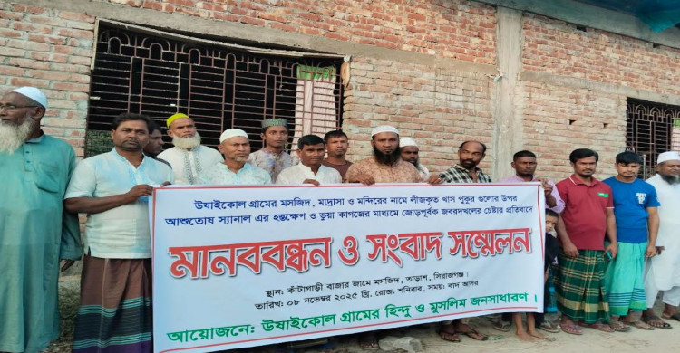 ধর্মীয় প্রতিষ্ঠানগুলোর লিজকৃত পুকুর দখলচেষ্টার প্রতিবাদে মানববন্ধন