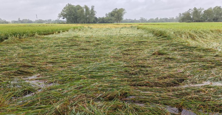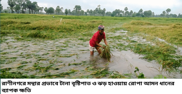 ঘূর্ণিঝড় মন্থার প্রবাবে রাণীনগরে নূয়ে পড়েছে রোপা-আমন ধান ফলন নিয়ে সংখ্যা