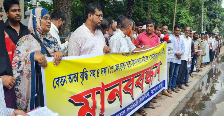 যশোরে চারদফা দাবিতে গ্রামীণ ডাক কর্মচারী ইউনিয়নের মানববন্ধন