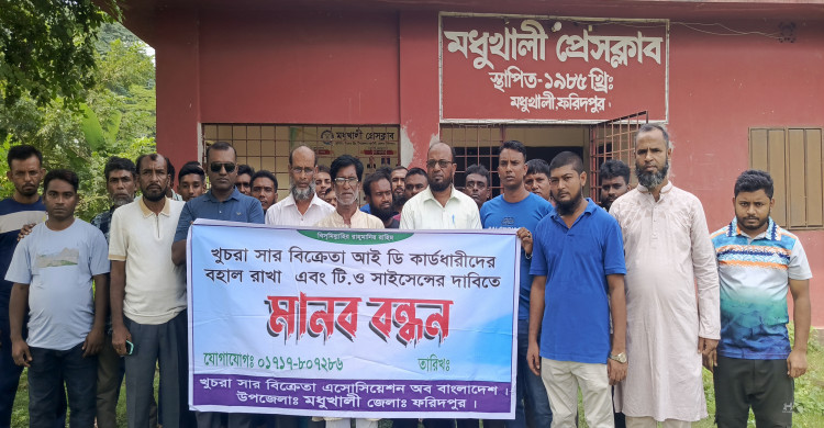 লাইসেন্স বাতিল প্রক্রিয়া স্থগিতের দাবিতে মধুখালীতে সার বিক্রেতাদের মানববন্ধন ও স্মারকলিপি প্রদান