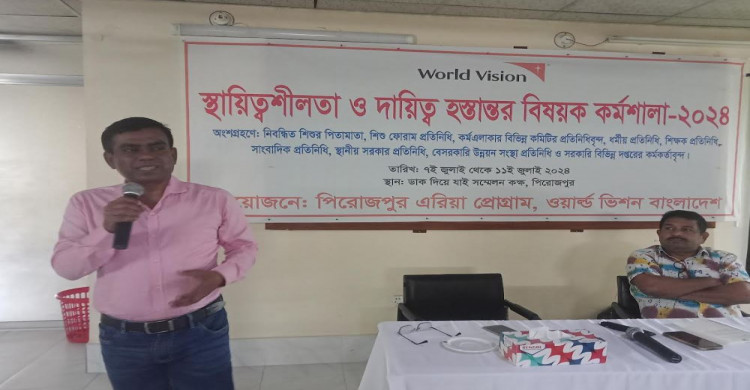 ওয়ার্ল্ড ভিশন বাংলাদেশ পিরোজপুর এপির আয়োজনে এলাকার নিবন্ধিত শিশুর পিতামাতা স্থানীয় সরকারি বেসরকারি বিভিন্ন দপ্তরের প্রতিনিধি ধর্মীয় প্রতিনিধি শিক্ষক সাংবাদিক শিশু ও যুব প্রতিনিধি সহ এলাকার বিভিন্ন উন্নয়ন কমিটির সদস্যদের অংশগ্রহণে ডাক দিয়ে যাই প্রশিক্ষন কেন্দ্রে কর্মশালা অনুষ্ঠিত হয়। কর্মশালায় ওয়ার্ল্ড ভিশনের শিক্ষা,দুর্যোগ মোকাবিলা, শিশু সুরক্ষা ও অর্থনৈতিক উন্নয়ন সহ বিগত দিনের বিভিন্ন কর্যক্রম সম্পর্কে আলোচনা করা হয় এবং পরবর্তী সময়ে যখন ওয়ার্ল্ড ভিশনের প্রকল্পগুলোর মেয়াদ শেষ হয়ে যাবে ঠিক তখন এলাকার বিভিন্ন সরকারি বেসরকারি প্রতিষ্ঠান এর সহযোগিতা ও বিভিন্ন কমিটির প্রতিনিধিদের অংশগ্রহণে শিশু ফোরামের সদস্যদের সমন্বয় করে উক্ত কার্যক্রম গুলো চলমান রাখতে পারে এবং এলাকায় কি ভাবে সুবিধা গুলো চলমান থাকে সে বিষয়ে আগামি তিন বছর মেয়াদি একটি পরিকল্পনা প্রনয়ন করা হয়। উক্ত কর্মশালায় ওয়ার্ল্ড ভিশনের বরিশাল ভান্ডারিয়া ও পিরোজপুর এপির বিভিন্ন পর্যায়ের কর্মকর্তা বৃন্দ উপস্থিত ছিলেন।