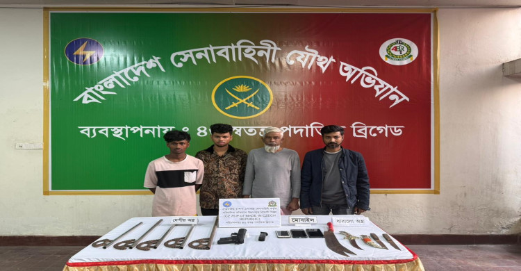 বংশালে সেনাবাহিনীর অভিযানে লুট হওয়া বিদেশি পিস্তলসহ দেশীয় অস্ত্র উদ্ধার, ৪ জন গ্রেফতার