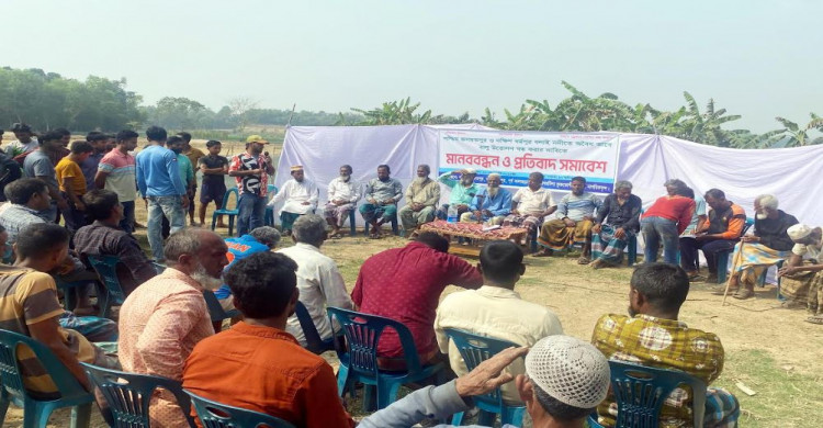 কমলগঞ্জে অবৈধভাবে বালু উত্তোলন বন্ধের দাবিতে ৩ গ্রামের মানুষের মানববন্ধন ও প্রতিবাদ সভা