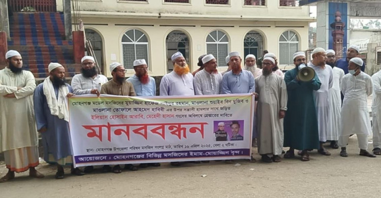 মোহনগঞ্জে ইমামের ওপর হামলাকারীদের দ্রুত গ্রেপ্তার দাবিতে মানববন্ধন