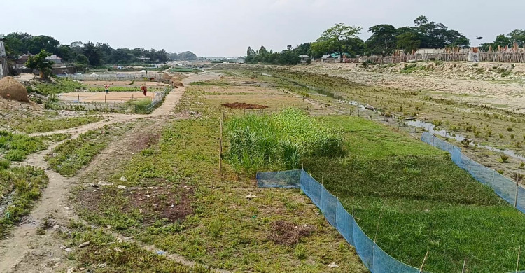 নেত্রকোনার খালিয়াজুরীর পিয়াইন নদীটি নিয়ম মাফিক খনন না হওয়ায় খরস্রোতা নদীতে চলছে কৃষিচাষ