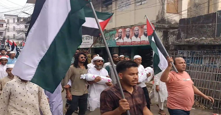 ইজরায়েলের সকল পন্য বয়কটের দাবীতে নেত্রকোনায় বিক্ষোভ