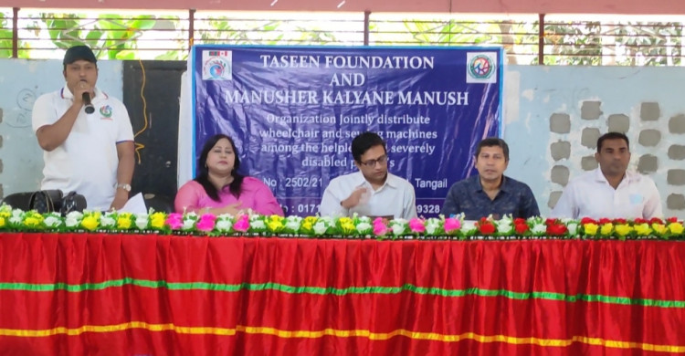 টাঙ্গাইলে মানবতার কল্যাণে প্রতিবন্ধী মানুষের মাঝে হুইল চেয়ার প্রদান