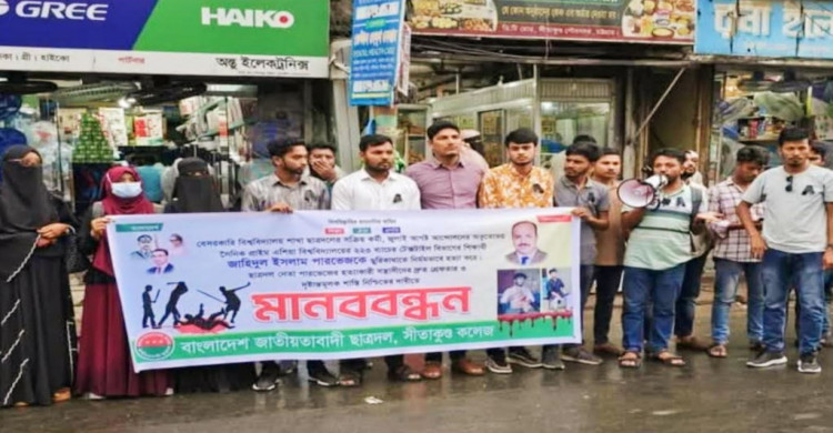 ছাত্রদল নেতা পারভেজকে হত্যার প্রতিবাদে সীতাকুণ্ডে মানববন্ধন