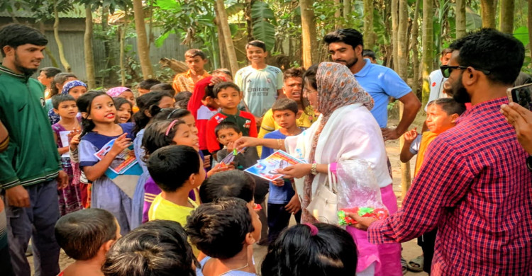 শেরপুরে বিএনপির এমপি প্রার্থী ডা: প্রিয়াঙ্কার শিশুদের মধ্যে চকলেট বিতরণ
