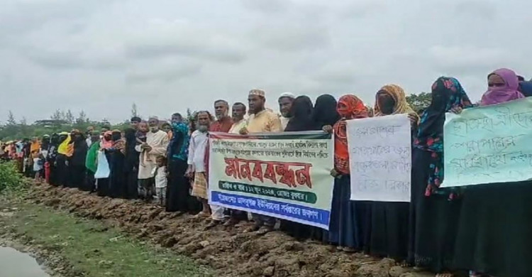 কলাপাড়ায় ব্রিজ নির্মাণের দাবিতে মানববন্ধন করেছে এলাকাবাসী