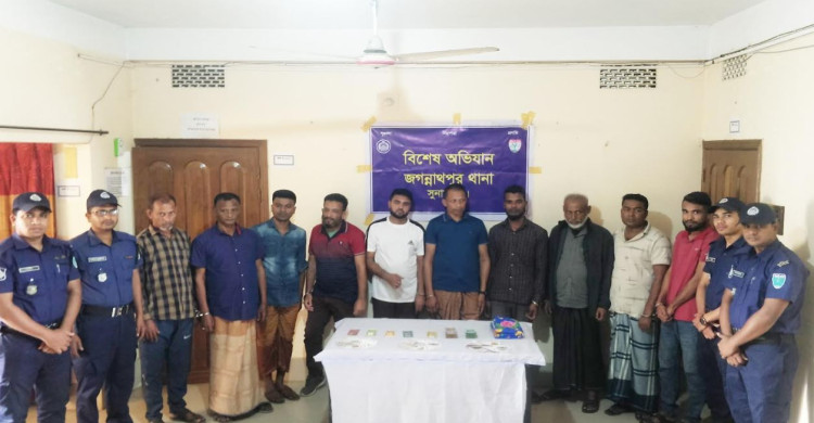 জগন্নাথপুরে নগদ দেড়লাখ টাকা সহ ১০ জুয়াড়ি গ্রেফতার