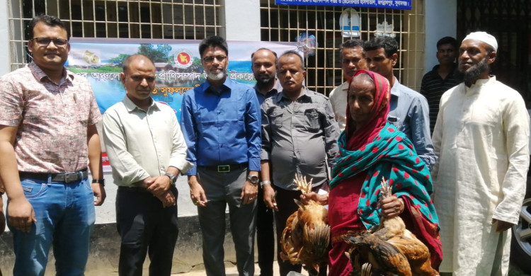 জগন্নাথপুরে ক্ষুদে খামারিদের মাঝে প্রাণিসম্পদের মুরগী বিতরণ