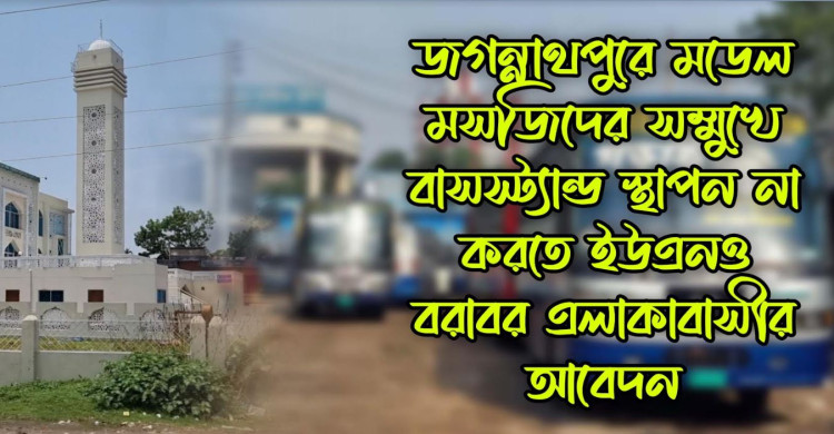 জগন্নাথপুরে মডেল মসজিদের সম্মুখে বাসস্ট্যান্ড স্থাপন না করতে ইউএনও বরাবর এলাকাবাসীর আবেদন